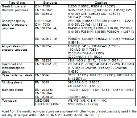 Typical raw material qualities: